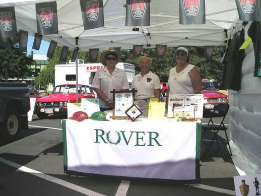 Marie Heaster, Barbara Tait, Pauline Goggin staffing the automobilia booth and Rover HQ
